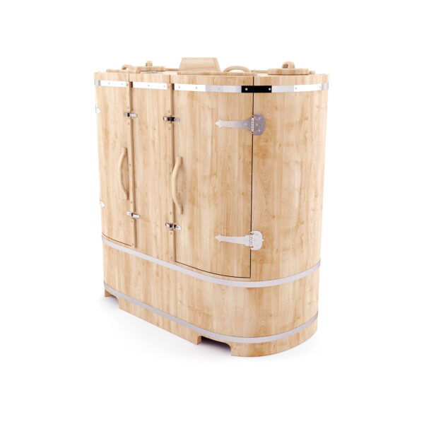 Двухместная овальная фитобочка «Профессионал» — отличный вариант для санатория, здравницы, агроусадьбы, общественной бани, SPA салона или просто частного дома. Конструктивной особенностью кедровой бочки является то, что процедуры однавременно могут с комфортом принимать два человека. Увеличенная до 40 мм толщина стенок фитобочки, позволит продлить срок службы при интенсивном использовании. Для установки и подключения фитобочки не понадобится водопровод и канализация. Вода заливается в парогенератор, а конденсат аккуратно удаляется из бочки в специальную емкость. Регулируемое по высоте сиденье, позволит комфортно разместиться человеку любого роста, а трап из кедра защитит ноги от пара.