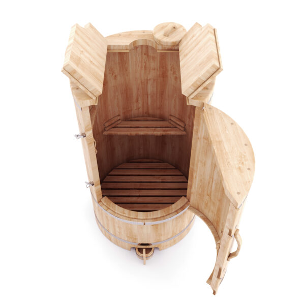 Классическая круглая фитобочка «Профессионал» — отличный вариант для санатория, здравницы, агроусадьбы, общественной бани, SPA салона или просто частного дома. Компактную кедровую бочку можно разместить в любом помещении. Увеличенная до 40 мм толщина стенок фитобочки, позволит продлить срок службы при интенсивном использовании. Для установки и подключения фитобочки не понадобится водопровод и канализация. Вода заливается в парогенератор, а конденсат аккуратно удаляется из бочки в специальную емкость. Регулируемое по высоте сиденье, позволит комфортно разместиться человеку любого роста, а трап из кедра защитит ноги от пара.