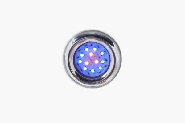 Подсветка состоит из одной многоцветной диодной лампы, разработанной специально для купели. Нажатием кнопки на пульте, лампа меняет цвета – становится желтой, синей или красной. Радуга из цветов издает определенные вибрации, благотворно влияющие на наш организм и эмоциональное состояние.