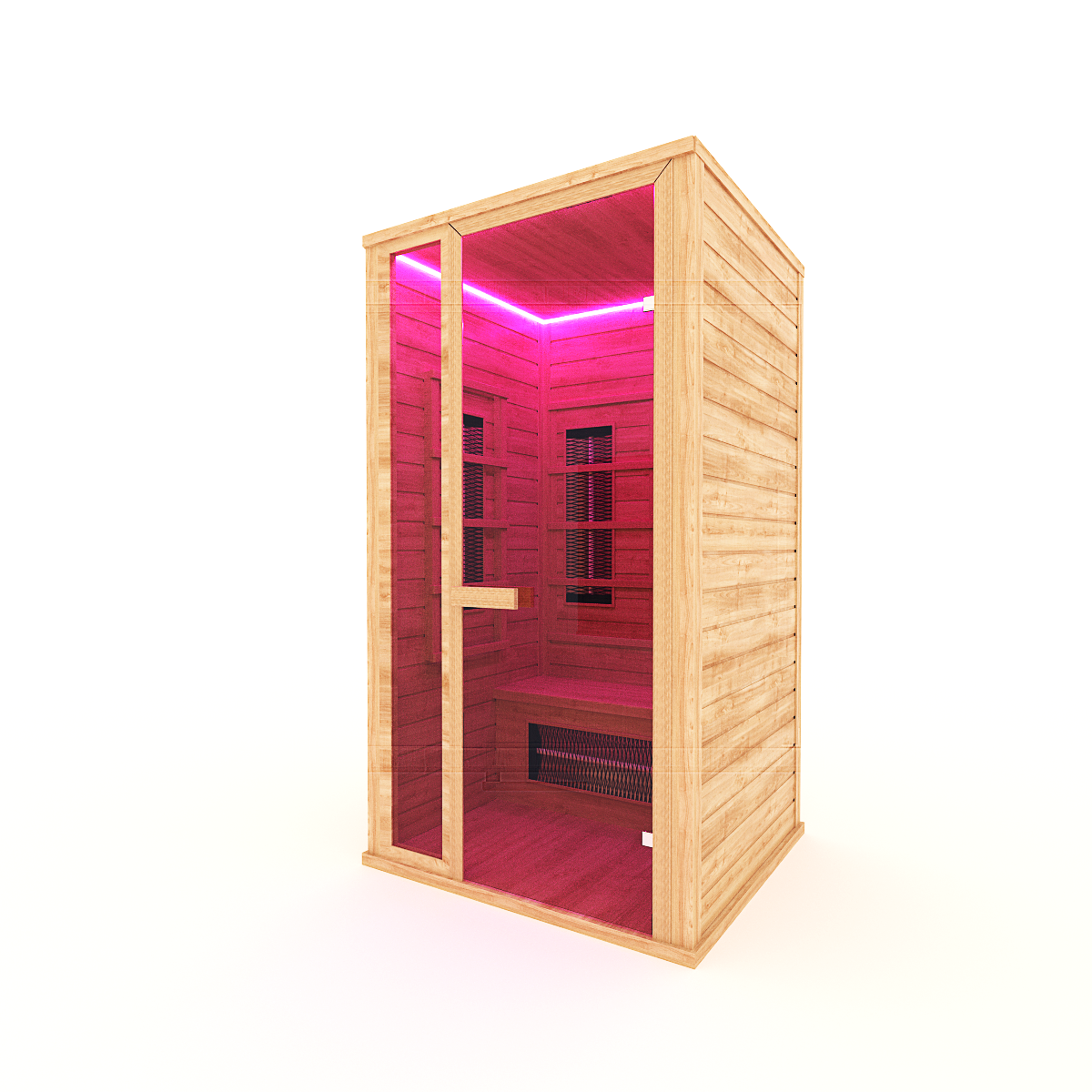 Размер: длина 1150 мм, ширина 1050 мм, высота 2000 мм, вход со стороны 115 см, из кедра, 5 излучателей