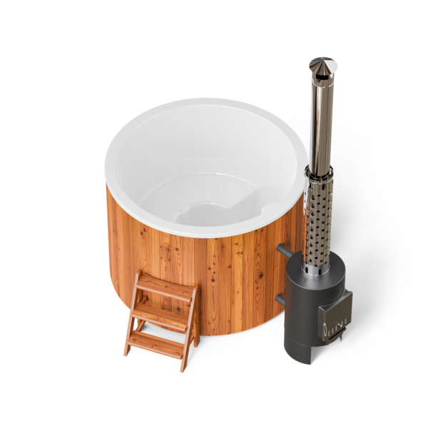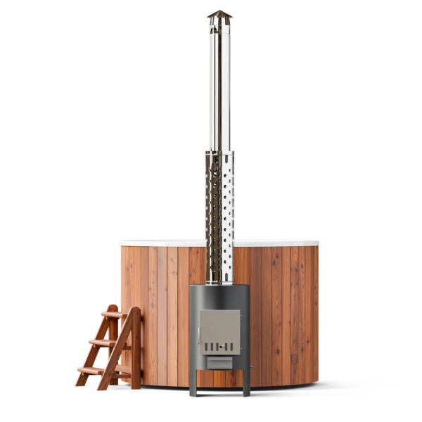 Отделка купели выполнена ламелями из термососны или термоясеня. Древесина предварительно подвергся температурной обработке в специальных условиях, что придаёт её устойчивость к воздействиям окружающей среды, стабильность (сохранение формы), прочность, долговечность и красивый внешний вид. Дополнительно древесина пропитываются специально разработанным составом на алкидной основе, который обеспечивает высокую защиту от влаги, гниения, плесени и грибков.