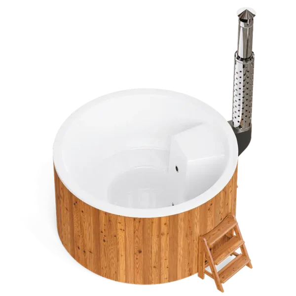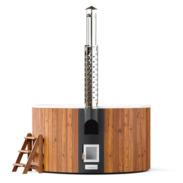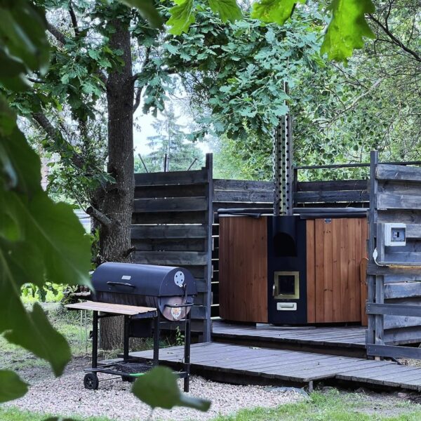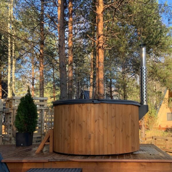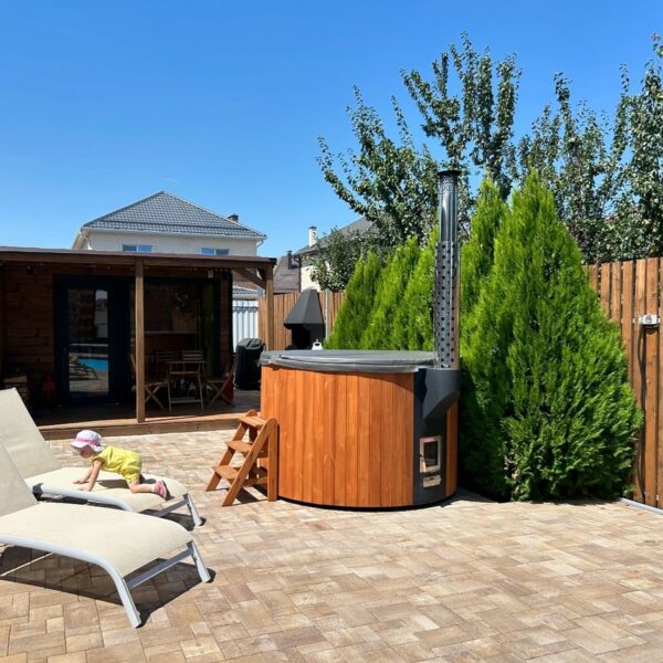 Вы сможете нежиться в купели круглый год, при любой погоде. Вода быстро набирается и быстро нагревается. Добиться комфортной температуры позволяет печь из нержавеющей стали, аккуратно интегрированная в емкость. Всего полтора часа — и можете окунаться в купель. Надежная термокрышка поможет ускорить время нагрева и сохранить тепло.