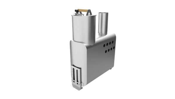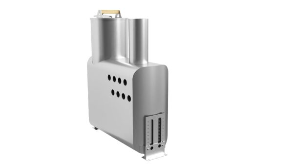 Горловина топочного отделения имеет полностью круглую форму и сплющенный на краях металл, что увеличивает прочностью данной, наиболее уязвимой части печи к деформации, во время топки, вдвое за счет увеличения толщины стенки в два раза, а поскольку стенка увеличена только на самом верху горловины, то данный факт отрицательно не сказывается на КПД, а также данная часть печи имеет безопасную поверхность, об которую нельзя порезаться. Крышка печи в отличии от стандартной серии погружных печей имеет также круглую форму с отбортовкой, благодаря которой крышка легко и надежно лежит на топочном отделении. Круглая форма с отбортовкой и внутренним загибом, который входит в поддувало, гарантирует необходимую жесткость, чтобы крышка не деформировалась даже при максимальных нагрузках. Поддув воздуха в топку осуществляется через лючок на самой крышке, который оснащен удобной рукояткой и данный лючок открывается под углом, что не даст воде в виде дождя попасть в топку во время процесса работы печи и абсолютно легко позволяет регулировать необходимое количество подачи воздуха.