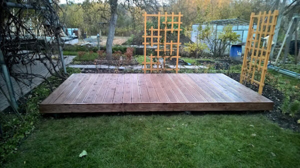 Для установки не требуется длительная подготовка, не нужно заливать бетонную стяжку или выкладывать плитку. Установить деревянный подиум можно практически в любом месте. Материал, цвет, размер и форма подиума подбирается исходя из личных предпочтений или условий ландшафта.